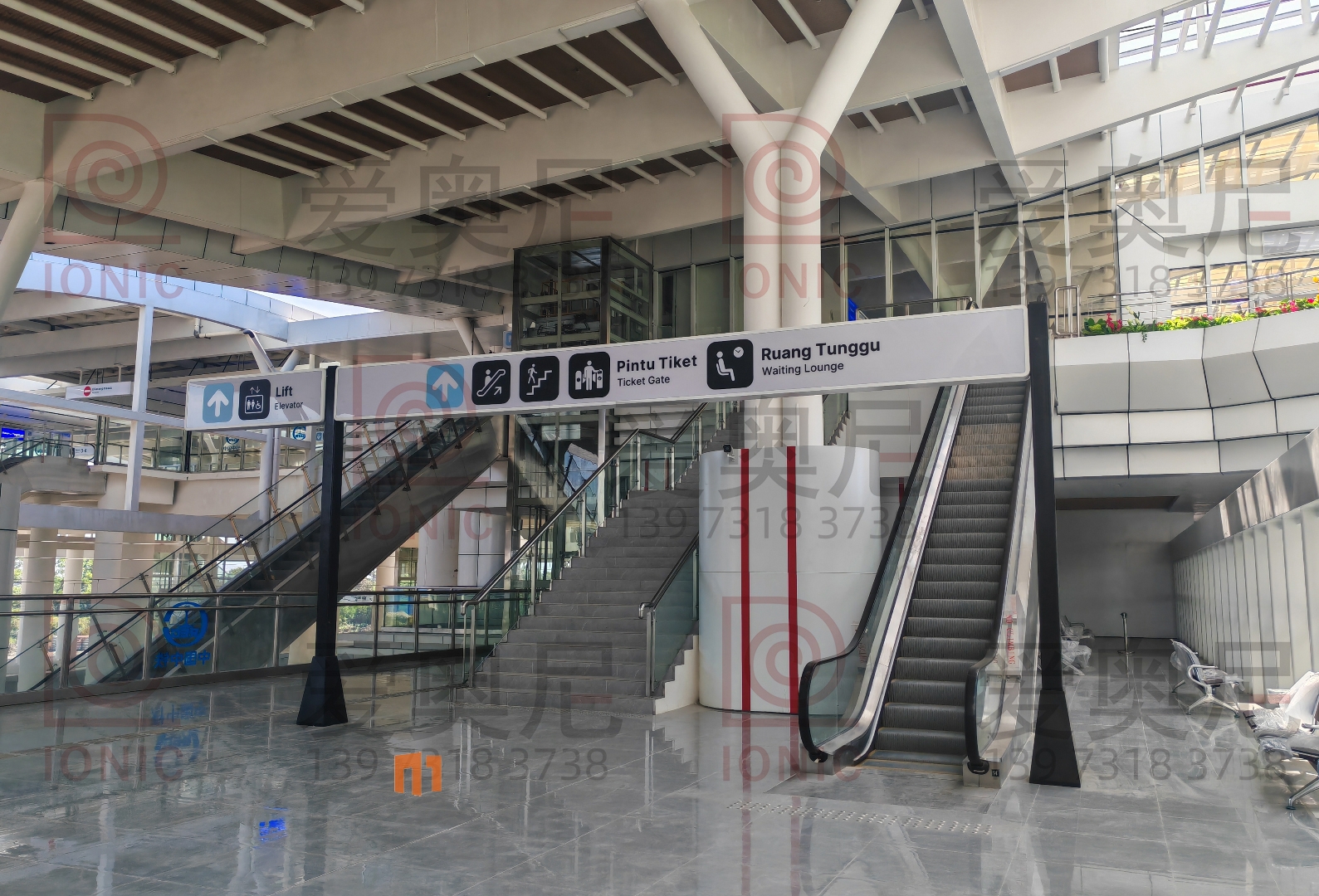 下圖是愛奧尼標識公司為印尼雅萬高鐵帕達拉郎站制作和安裝指導服務的靜態標識。客戶對項目制作工藝非常滿意。湖南愛奧尼標識工程有限公司是一家專業的鐵路標識,導向標識,高鐵站標識,站房標識,靜態標識設計制作安裝服務公司,擁有15年標識設計經驗,100多名專業生產團隊,獲得ISO9001質量管理體系認證等數10項榮譽資質證書,電話:400-0731-050,13973183738