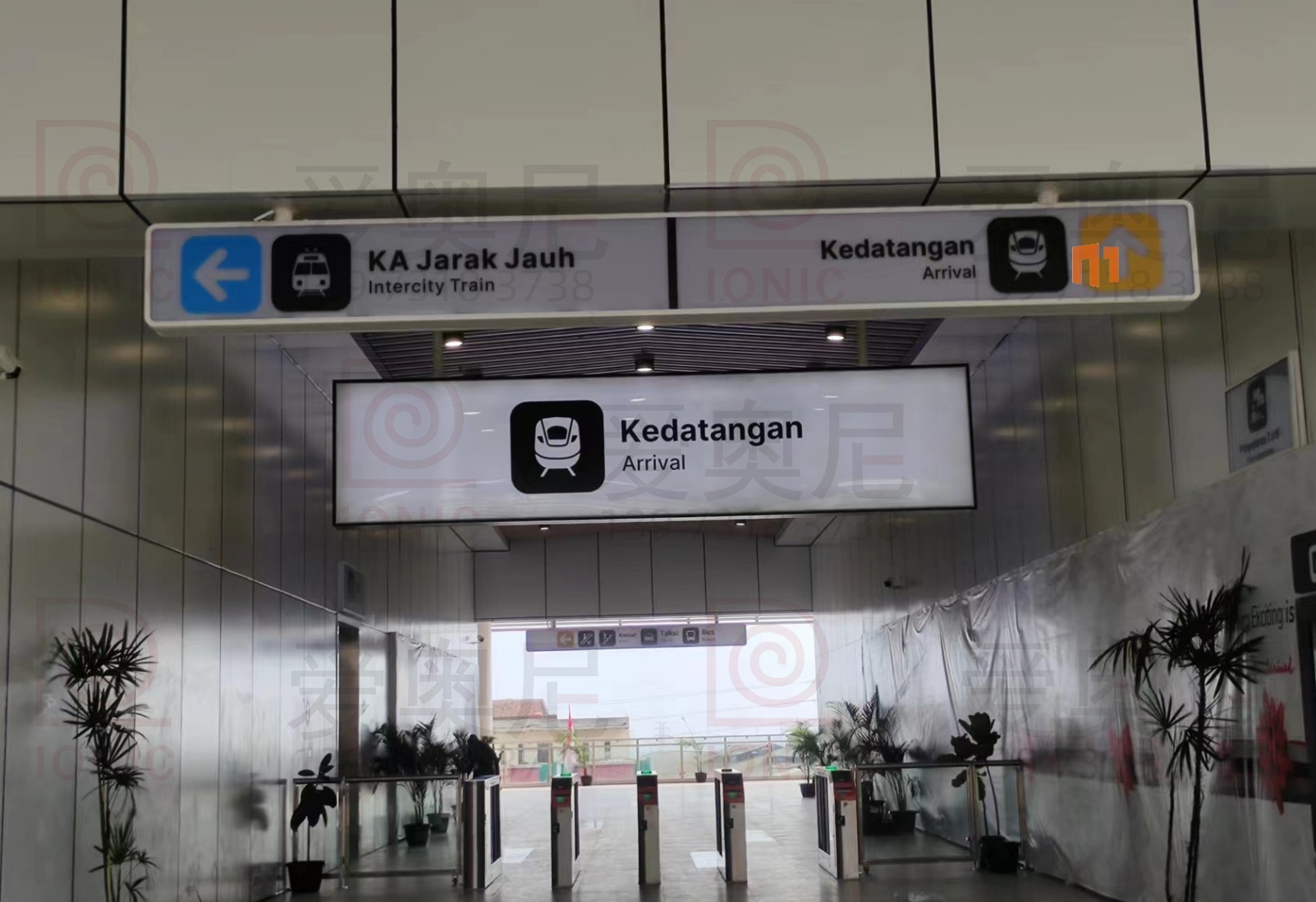 雅萬高鐵是中國共建“一帶一路”倡議和印尼“全球海洋支點”構想對接、中印尼兩國務實合作的旗艦項目,全線采用中國技術、中國標準,也是印尼和東南亞第一條高速鐵路。雅萬高鐵連接印尼首都雅加達和旅游名城萬隆,線路全長142.3公里,最高運行時速350公里,始自雅加達市,途經勿加泗市、勿加泗縣、卡拉旺縣、普旺加達縣、西萬隆縣、芝馬墟市、萬隆縣,終至萬隆市,設有哈利姆、卡拉旺、帕達拉朗、德卡魯爾4座車站。愛奧尼助力中鐵三局為帕達拉郎站提供站內所有靜態標識的生產和安裝指導服務。