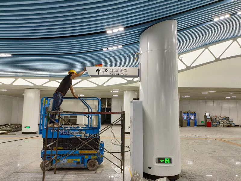 2021年4月,愛奧尼依托十多年導(dǎo)向標(biāo)識項(xiàng)目的沉淀,以過硬的制造技術(shù),豐富的安裝經(jīng)驗(yàn)一舉中標(biāo)長沙 市軌道交通6號線的導(dǎo)向標(biāo)識制作與安裝。2022年3月又成功中標(biāo)長沙地鐵6號線烈士公園南站文化藝術(shù)墻 制作與安裝。公司領(lǐng)導(dǎo)高度重視長沙地鐵6號線項(xiàng)目,各部門同事密切配合,克服一切困難,日夜奮站至 保質(zhì)保量完成交付,并多次在軌道交通調(diào)研檢查中獲得高度評價。