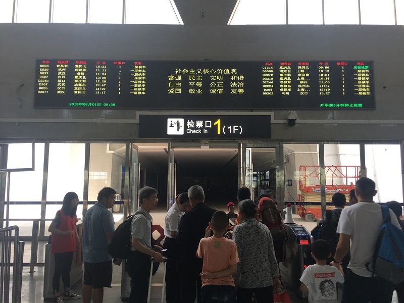 實(shí)名驗(yàn)證/安全檢查設(shè)置在進(jìn)站口處。實(shí)名驗(yàn)證/安全檢查應(yīng)設(shè)置安全須知、“一米線”、驗(yàn)票驗(yàn)證(車票復(fù)位)等,告知旅客實(shí)名制驗(yàn)證及安全檢查注意事項(xiàng),引導(dǎo)旅客有序等候。