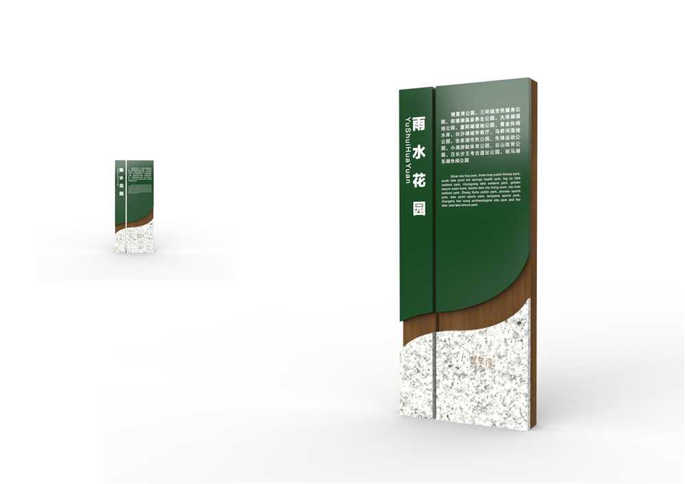 一標注出來,只要你一進入公園就可以將公園的結(jié)構(gòu)看得一清二楚。在設(shè)計時應考慮既不能破壞園林整體氣氛,又可以達到引導、吸引游客的目的。由于范圍廣泛,園林的導視密度相對降低,體量感相對增大,而且導視系統(tǒng)設(shè)計風格、色彩統(tǒng)一性,以及形式感都可以相對自由、新穎,給人深刻印象。